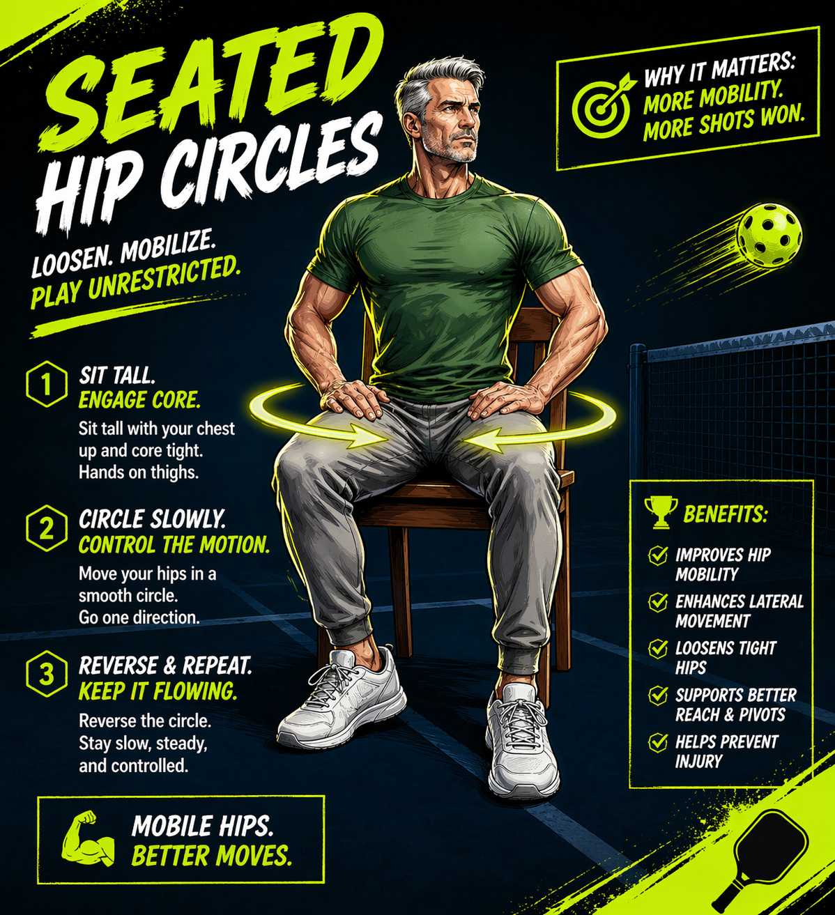 6 free chair-based moves for pickleball players 40+ — unlock 12 more with your free profile